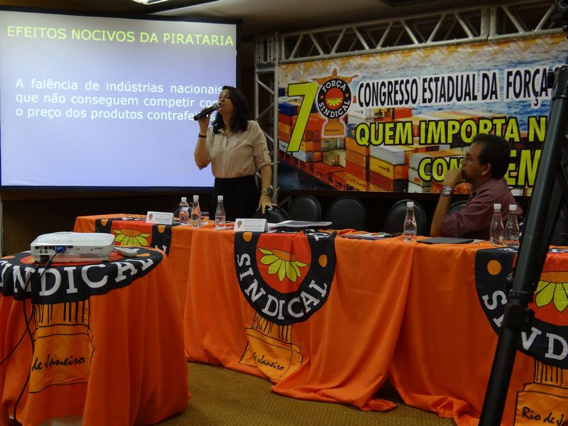 Já a presidente do Sindicato Nacional dos Analistas Tributários da Receita Federal do Brasil, Sílvia Helena de Alencar Felismino, explicou porque o movimento sindical deve combater a pirataria. Seu Sindicato criou em 2005 a premiada campanha “Pirataria: tô fora! Só uso original” e Sílvia Helena anunciou que a entidade já trabalha em outra campanha, “O Brasil não pode parar: Aduana 24 horas!”, que procurará mostrar que o que eleva o custo da carga é a sua manutenção nos recintos alfandegários. As campanhas são desenvolvidas geralmente em momentos de festa popular e lazer e Sílvia Helena espera que os Ministérios da Saúde e Educação despertem para o problema, tanto quanto já despertaram para a questão do uso de cigarros. “Os sindicatos têm que ir além de seu eixo umbilical, suas lutas corporativas. Devem lutar pelo bem estar social, pela cidadania, dignidade e soberania. A pirataria é crime rentável e se expande a nível mundial pela impunidade. A maioria dos produtos vem da China, fruto do subemprego, e não dá para competir no fator preço. Mas pagamos muito mais caro, inclusive com danos à saúde, muitas vezes irreversíveis, como câncer nos olhos pelo uso de óculos pirata”, enfatizou a analista tributária.