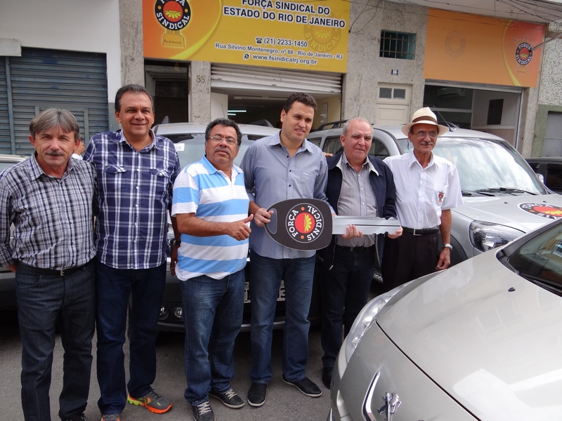 Miguel Torres, presidente da Força Sindical Nacional, entrega a chave da Doblô a Francisco Dal Prá presidente da Força sindical RJ