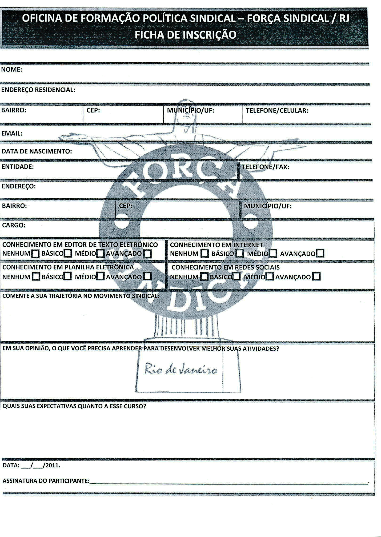 Ficha de Inscrição Curso “Formação Sindical”