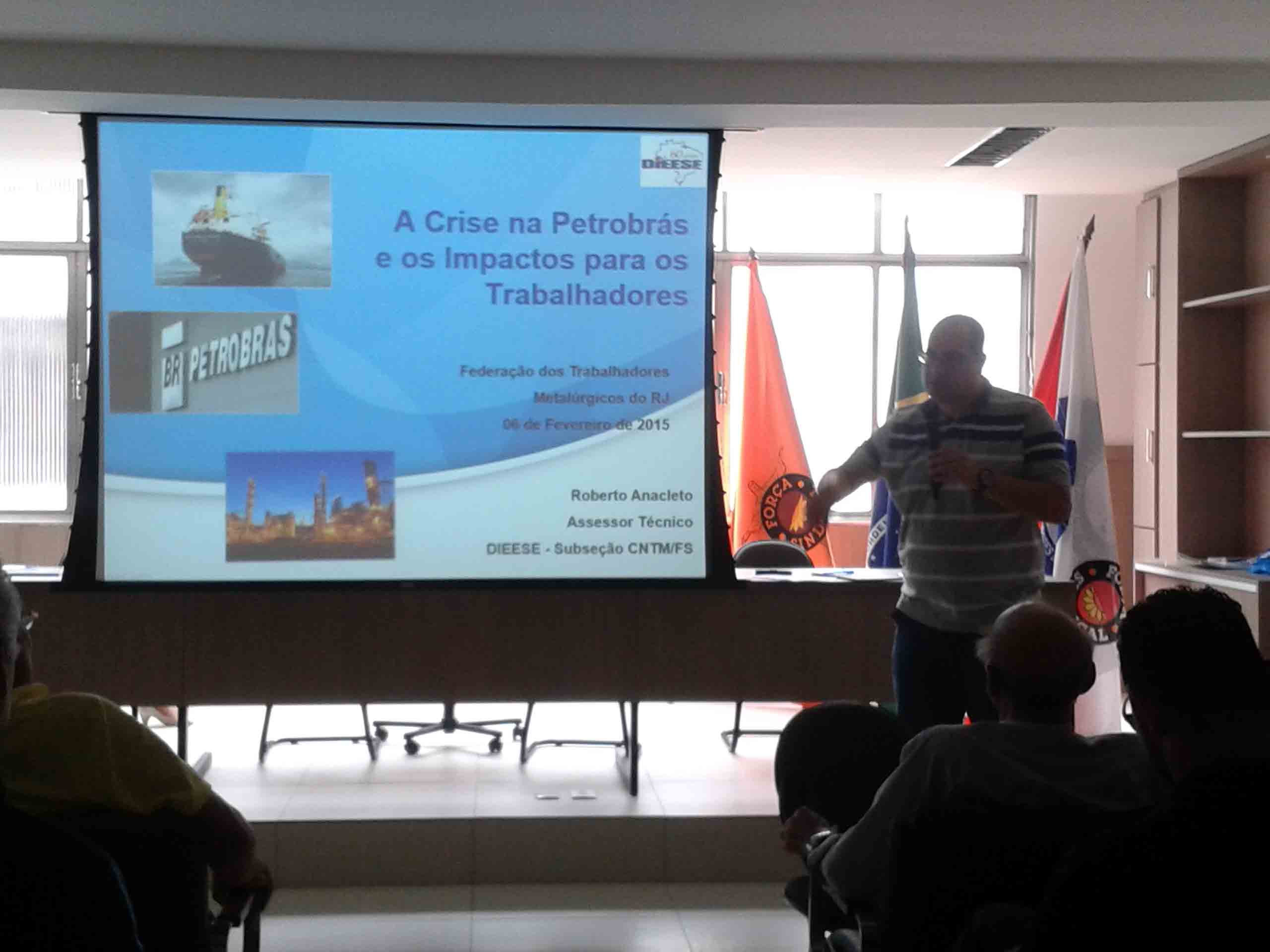 Reunidos dia 6 de fevereiro na Federação dos Metalúrgicos do Rio de Janeiro, dirigentes sindicais dos metalúrgicos do estado traçaram estratégias de enfrentamento da crise socioeconômica que se abateu sobre o país depois das investigações da Operação Lava Jato, que vem denunciando rombos bilionários nos cofres da Petrobras, maior estatal brasileira. Após palestra do técnico do Departamento Intersindical de Estatística e Estudos Socioeconômicos (Dieese), Roberto Anacleto, sobre “A crise na Petrobras e os impactos para os trabalhadores”, sindicalistas apresentaram propostas, que serão levadas amanhã (11) à Confederação Nacional dos Trabalhadores Metalúrgicos (CNTM), em São Paulo.